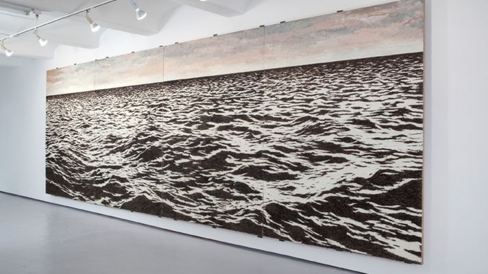 Isla przedstawia wzburzone morze odmalowane w ciemnych barwach. Po bliższym przyjrzeniu się okazuje się jednak, że jedyna farba, jakiej użyto, ma jasny kolor, a wszelkie ciemne elementy to tak naprawdę mnóstwo haczyków na ryby. Na sklejce szerokiej na niemal 8 metrów umieszczono ponad pół miliona haczyków, które razem tworzą niesamowitą kompozycję.