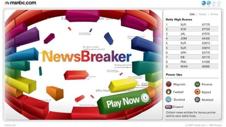 Nie...NewsBreaker - agregator newsowy msnbc jako nadrzędną zasadę ma rozbawić. A dopiero później -informować. Aby bowiem przeczytać najnowsze informacje, trzeba najpierw pograć w Arkanoida. Nie jest to najbardziej efektywny sposób czytania wiadomości, ale za to jaki zabawny! I zawsze można wybronić się przed szefem, który nakryje nas na gierce on-line.