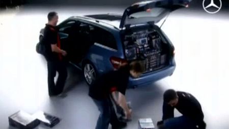 Poniższy filmik, przedstawia nowy samochód marki Mercedes – Benz (klasa E). Producent popisując się pojemnością bagażnika nowego modelu, przygotował niezapomniane show. Z bagażnika wyjęto kilkadziesiąt opakowań torów wyścigowych z których ułożono niesamowitą 400 metrowa trasę!