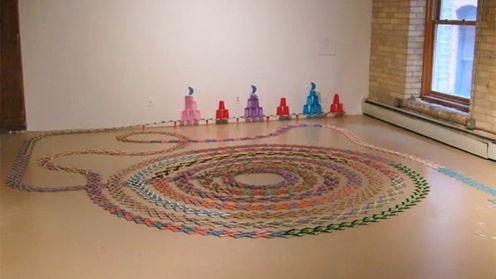 No cóż, nie ma tutaj wybuchu, ale efekt jest naprawdę ciekawy, w szczególności gdy ułoży się kilkaset takich bomb koło siebie! Spójrzcie zatem na niesamowitą reakcję łańcuchową w której użyto dokładnie 2250 szpatułek laryngologicznych (różne kolory) do pobicia rekordu świata.