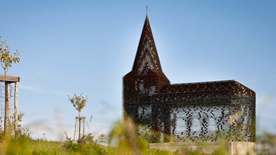 Arnout Van Vaerenbergh i Pieterjan Gijs stworzyli kościół, który nazwali “czytanie pomiędzy wierszami”. Ta niezwykła konstrukcja składa się ze 100 poziomych warstw i a aż 2000 kolumn wykonanych ze stali.