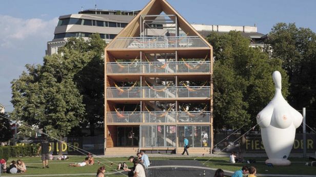 Stworzony przez dwóch projektantów, pięciopiętrowy budynek stojący w sercu stolicy przyciąga do siebie możliwością niecodziennego odpoczynku (oraz dziwaczną rzeźbą z gigantycznym biustem). Każdy chętny może przyjść do Flederhaus i rozłożyć się na jednym z wiszących hamaków. Miejsce oferuje nie tylko możliwość wygodnego wiszenia, ale również przyjemny cień oraz widok na miasto z dużej wysokości.