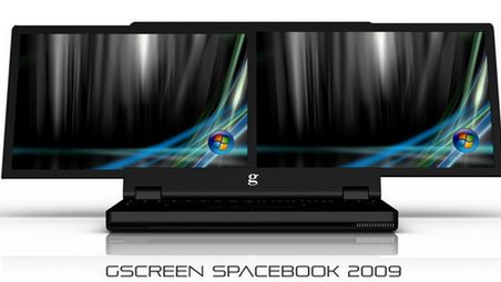 Notebook gScreen z podwójnym ekranem złapany na filmie