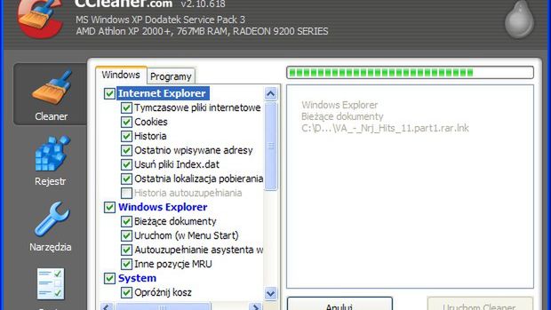 CCleaner usunie również historie przeglądanych stron , tymczasowe pliki a także zeskanuje rejestr systemowy usuwając niepotrzebne wpisy oraz klucze.