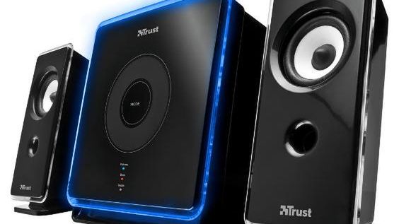 Pierwsza to zestaw 2.1 (dwa głośniki stereo plus subwoofer) XpertTouch Speaker Set firmy Trust (powyżej). W zasadzie to sprzęt do komputera, ale ciekawy design pozwala na połączenie go z telewizorem czy odtwarzaczem Blu-ray/DVD i wykorzystanie jako źródła dźwięku w takim minikinie domowym.