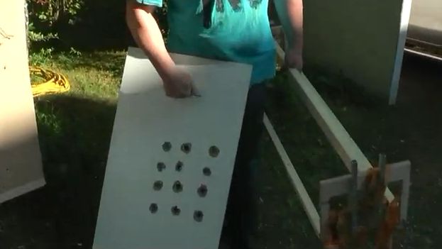 Nazwa skonstruowanej procy jest bardzo celna. Sprzęt strzela sześcioma 20 milimetrowymi kulami stalowymi jednocześnie. Kule są w stanie przebić się przez arbuza, drewnianą płytkę,= czy skorupę orzecha kokosowego. Podejrzewam, że nie miałyby najmniejszych problemów z ludzką skórą lub kośćmi. Oto krótkie wideo prezentujące nowy wynalazek.