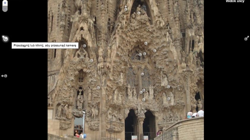 Nie wszędzie ten rodzaj nawigacji jest widoczny - zależy to od obecności zdjęć użytkowników, a pierwszej mierze oczywiście od tego, czy w ogóle widok ulicy jest dostępny. Przykład użycia znajdziesz w Mapach Google - barcelońska świątynia Sagrada Familia.