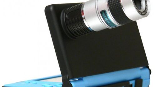 Pierwsza fotka przedstawia futerał zabezpieczający Zoom Case dla konsoli DSi. Jak widać poza ochroną konsoli zapewnia on też lunetkę. Ma ona oferować 8-krotne zbliżenie optyczne dla aparatu Dual Screena. Tylko po podczepieniu obiektywu nie wkładajcie konsoli do kieszeni spodni. Może to wyglądać dwuznacznie.