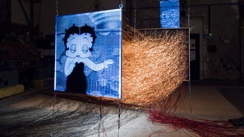 Jak widać, niezły efekt można osiągnąć bardzo prostymi metodami. Na czym to urządzenie polega? Pierwszą, ważną częścią jest ekran o wielkości 1 metra kwadratowego i rozdzielczości 50 x 50 pikseli. Drugim istotnym elementem jest "mata" z czujnikami światła o dokładnie takim samym rozmiarze i takiej samej ilości przewodników, ile wcześniejszy panel ma pikseli (czyli 2500).