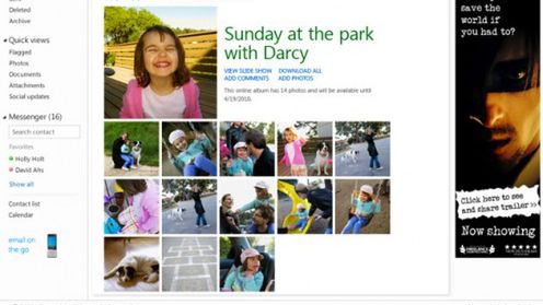 Przejdźmy do konkretów. Na początku warto podkreślić, że pojemność konta będzie nieograniczona, a jeden załącznik będzie mógł ważyć maksymalnie 50 MB. Ponadto, do jednego maila będzie można dołączyć wiele załączników, o łącznej pojemności do 10 GB. Dzięki integracji z wirtualnym dyskiem SkyDrive będziemy mogli zarządzać plikami online i w łatwy sposób podzielimy się zdjęciami z rodziną i przyjaciółmi, które zostaną zaprezentowane w formie przejrzystego albumu fotograficznego.