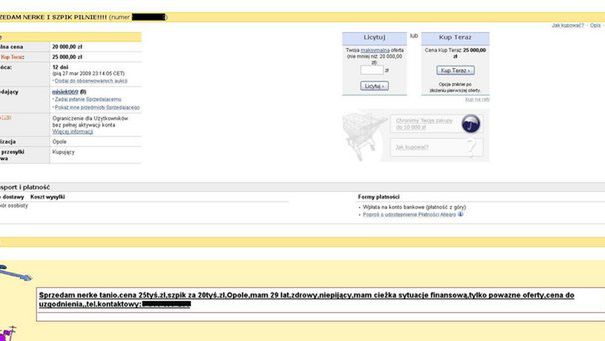 Oferty sprzedaży nerek nagminne na Allegro