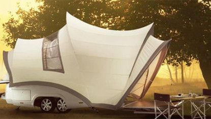 Przypięta do pojazdu przyczepa wygląda prawie całkowicie zwyczajnie, ale po rozłożeniu fantazyjnego zadaszenia zmienia się w dość dziwaczny twór, który na polu campingowym będzie niewątpliwie prezentował się dość niecodziennie. Na razie Opera to jedynie prototyp, który został zaprezentowany na targach Design at Work w Belgii. Czy wejdzie do sprzedaży? Jeszcze nie wiadomo, choć przypuszczalnie, cena za tą luksusową przyczepę będzie wynosiła więcej niż cena campera. Dla mnie zaś, camper to jednak większy luksus i wygoda.