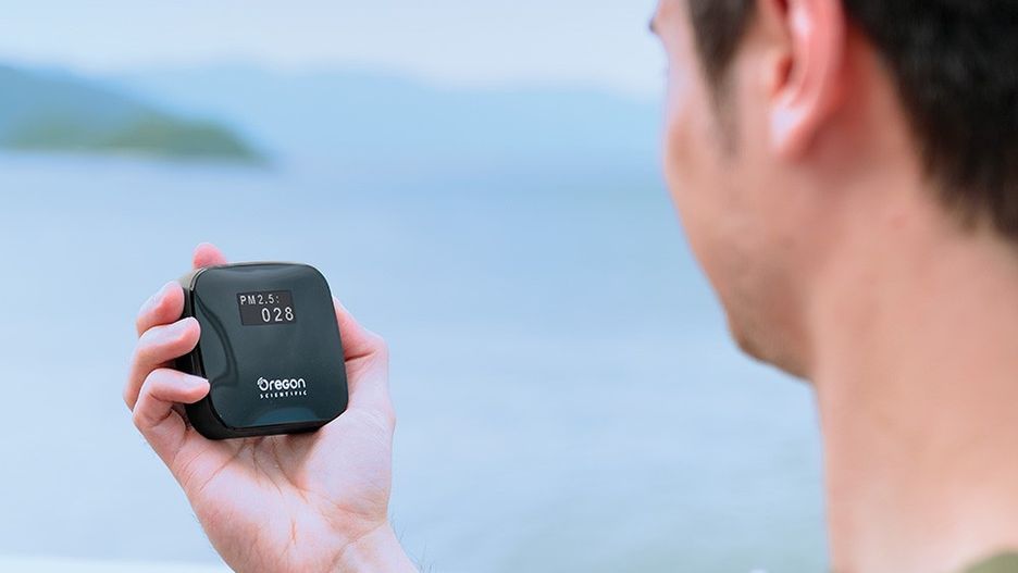 Jeszcze atrakcyjniej prezentuje się propozycja amerykańskiej marki Oregon Scientific, od 1989 roku produkującej drobną domową elektronikę. Swoją ofertę elektronicznych zegarków, wag łazienkowych czy właśnie stacji pogodowych rozszerzyła o mobilny czujnik jakości powietrza – model SHE101.