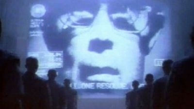 Rok 1984 przedstawia ponurą wizję świata, w którym obywatele są monitorowani na każdym kroku, panuje wszechobecna cenzura, a donosicielstwo jest jedną z największych cnót. Władza kontroluje obywateli poprzez wielkie ekrany (znajdujące się na każdym kroku) i tworzy olbrzymie bazy danych, w których znajduje się każdy szczegół z życia obywateli.