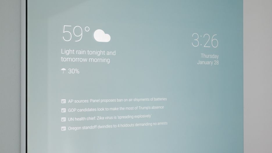 Braun sam zadbał również o oprogramowanie dla inteligentnego lustra, wykorzystując przy tym API Associated Press i Forecasta. Dzięki temu sprzęt wyświetla najnowsze wiadomości i aktualną pogodę, a do tego sam pobiera i aktualizuje wyświetlane dane. Autor - opierając się na usłudze Google Now - zadbał również o opcję wyszukiwania głosowego, a w przyszłości chce dodać obsługę przypomnień, notatek i informacji o ruchu drogowym w miejscu zamieszkania.