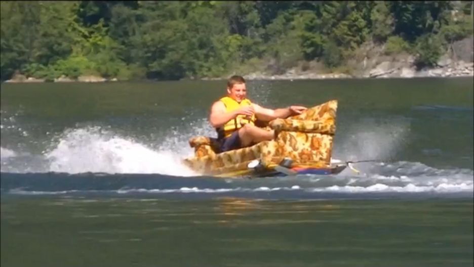 Nasi bohaterowie zaprezentowali dużo bardziej dosłowne podejście do wymienionej frazy. Realizacja pomysłu wymagała połączenia starej, zmodowanej sofy, motorówki, piwa i jeziora Kootenay w Kanadzie. Niestety, autorzy wideo nie podzielili się informacją, co dokładnie zostało dokręcone pod spodem kanapy. Tak czy owak wygląda to na genialny sposób na zabicie wakacyjnej nudy.