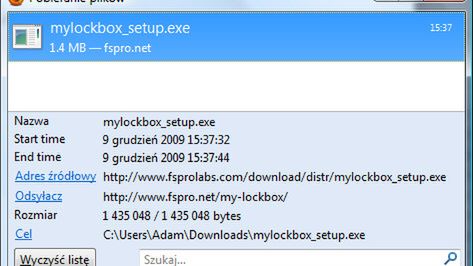 3 pozycje na liście tj. Adres źródłowy, Odsyłacz i Cel są hiperłączami do źródła - co pomaga w szybkim powrocie na stronę jeśli potrzebujemy np. ponownie pobrać uszkodzony plik.