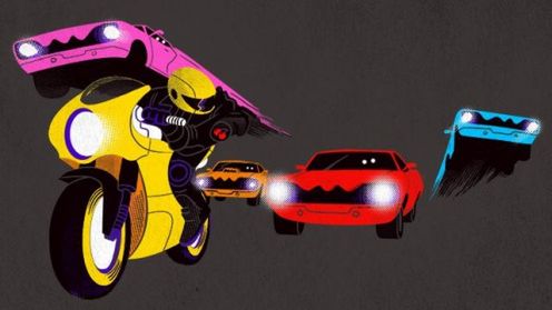 Mitch Loidolt wpadł na pomysł przedstawienia Pac-Mana w wersji nieco odbiegającej od oryginału, ale przyznam, że pomysł jest dość ciekawy. Jaki mianowicie? Spójrzcie na rysunek powyżej - ten motocyklista to oczywiście Pac-Man, a auta to duchy. Dlaczego tak?
