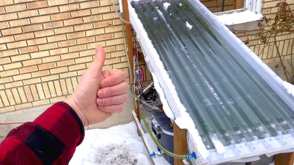 Rozwiązanie to postanowił samodzielnie przetestować Cody Reeder – amerykański popularyzator nauki, prowadzący na YouTube kanał Cody'sLab. Cody postanowił zbudować instalację przypominającą panel fotowoltaiczny. Zamiast warstwy z krzemowymi ogniwami zainstalował w nim niewielkie zbiorniki: miniaturową, działającą automatycznie farmę do produkcji alg.