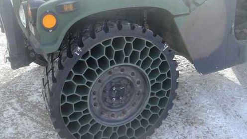 Naukowcy z amerykańskiego Pentagonu ujawnili, że testują, wytrzymałe opony bez powietrza - NPT, o których pojawieniu się mogliśmy przeczytać na Autokulcie. Mają one być instalowane w pojazdach typu Humvee, które to przewożą żołnierzy w Iraku, czy Afganistanie. Pojazdy te są szczególnie narażone na ataki. Opona ma być w pełni sprawna, nawet jeśli w 30 % zniszczona zostanie jej struktura.