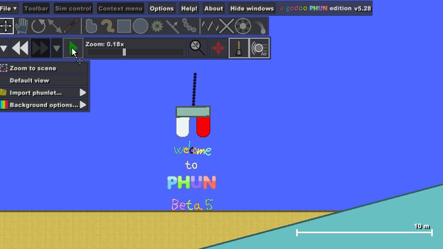 Co ważne, program dostępny jest na wszystkie popularne systemy operacyjne, także Mac OS i Linux. Paczkę instalacyjną zajmującą jedynie kilka megabajtów można pobrać za darmo ze strony producenta. Jak zapewne każdy przekona się po uruchomieniu, Phun do szybkiego działania wymaga dobrego komputera, gdyż przeliczanie różnego rodzaju danych pochłania szybko moc procesora. Posiadacze bardziej leciwych maszyn nie powinni się jednak od razu zrażać - zwyczajnie animacja będzie u nich tworzona wolniej, co czasem jest także bardzo atrakcyjne.