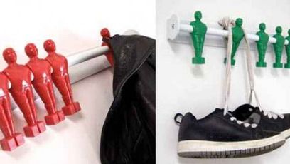 Plastikowe lub drewniane na stalowej rączce, umiejscowione jeden obok drugiego - z całą pewnością kolorowe piłkarzyki to domena popularnych także w Polsce stołów do gry w tę grę. Ale same piłkarzyki jak się okazuje świetnie służą do podtrzymywania zawieszonej odzieży - kurtek, szalików, marynarek itd. Ukryte w szafie stanowią fajną stylizację do naszego mieszkania. Jak zapewnia producent świetnie nadają się do pokoju nastolatka i rzeczywiście coś w tym jest. Niestety posiadają pewną istotną wadę, a mianowicie kosztują około 300 złotych.