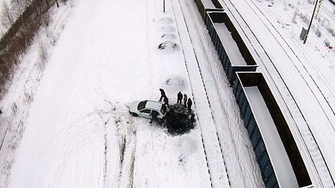 To dopiero testy, ale już widać, że PKP Cargo będzie zadowolone z dronów. Jeden z nich przepędził grupę złodziejaszków.