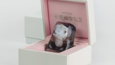 Wydruk powstaje w plastiku, po czym jest na wieki zamykany w przezroczystej żywicy. Projekt nazwano niezwykle uroczo: Postać aniołka.