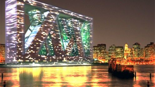 Na taki pomysł wpadł projektant E. Kevin Schopfer, tworząc projekt pływającego miasta w Zatoce Bostońskiej. Futurystycznie wyglądająca konstrukcja miałaby pomieścić 15 000 osób, jednocześnie zapewniając im wszelkie dogodności mieszkania w dużym mieście. Mogliby więc zrobić zakupy w centrum handlowym, pójść do kina, teatru lub muzeum. Posiadaliby nawet własny ratusz.