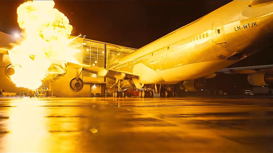 Jedna z kluczowych scen w nowym materiale promocyjnym ukazuje rozbicie Boeinga 747 o fasadę budynku przypominającego magazyn.