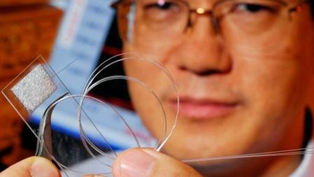 Zhong Lin Wang z Georgia Tech wpadł na pomysł wykorzystania światłowodów stosowanych w przemyśle komunikacyjnym do budowy paneli fotowoltaicznych nowego typu. Ponad to ze starych solarek usunięto niepotrzebne elementy aby uzyskać przezroczysty materiał. Następnie naniesiono przewodzącą powłokę nasyconą tlenkiem cynku. Światłowody bezpośrednio stykają się ze strukturą, widoczną na zdjęciu. Na pierwszy rzut oka przypomina trochę kawałek pianki poliuretanowej. W grę wchodzą również nano połączenia między powierzchnią światłoczułą, a samymi światłowodami.