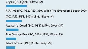 Jak widać w cuglach wygrał Wiedźmin. Zagłosowało na niego aż 48% wszystkich głosujących. Nieco niżej Call of Duty 4 z wynikiem 34%. Dalej Crysis 25%, FIFA 08 19%, Assassin's Creed 15%, Orange Box 12%, nieco mniej, bo 11% Gears of War na PC, Unreal Tournament III 7%, Mass Effect 5% oraz World in Conflict 3%.