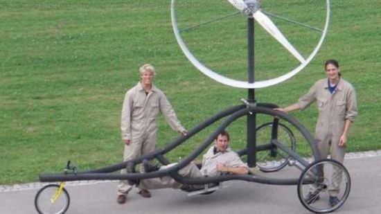 Wiem, że macie skojarzenia z pierwszymi machinami lotniczymi, albo z bicyklem skrzyżowanym z pradziadkiem samochodu. Tymczasem fotka przedstawia współczesny pomysł na pojazd całkowicie ekologiczny, bo napędzany jedynie wiatrem.