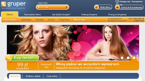 Przeciwnie, mimo że wybór jest duży, na polskim rynku wciąż liczy się głównie Groupon, a za nim plasuje się Gruper. I właśnie o tym drugim graczu stało się wczoraj znów głośno, po tym, jak Polskapresse, czyli wydawca dziennika "Polska The Times", zdecydowała się przejąć 54% jego akcji.