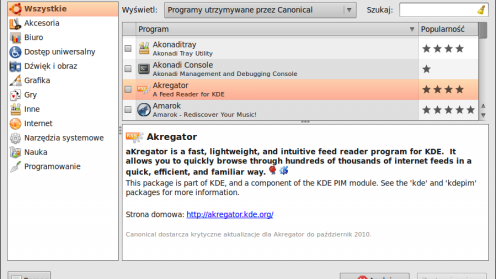 Kolejną różnicą jest to, że właściwie nie musimy uruchamiać żadnej przeglądarki aby odnaleźć interesujące nas oprogramowanie. Do jego wyszukiwania służą menedżery pakietów takie jak na przykład znany z Ubuntu Synaptic.