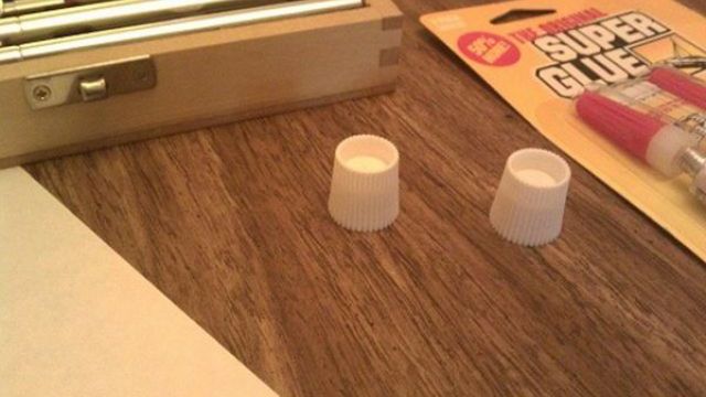Będziemy potrzebowali dwóch nakrętek do pasty do zębów i mocnego kleju, np. super glue.