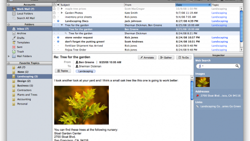 Bardzo wygodnie można przeglądać wiadomości jako całe wątki, gdzie widać i nagłówki, i treści wiadomości w jednym oknie. Wystarczy kliknąć na odpowiednim przycisku (Gather) i gotowe.