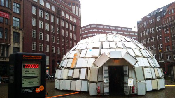 Berliński artysta, Ralf Schmerberg, postanowił pokazać światu, jak w kreatywny sposób można spożytkować stare lodówki. Jako że lodówka chłodzi, postanowił stworzyć z lodówek igloo imponujących rozmiarów - ma ono 11 metrów szerokości, więc bez problemu dałoby się tam urządzić imprezę.