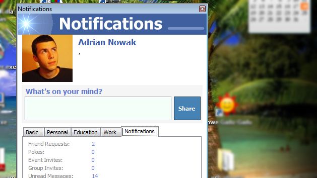 Jednym z takich narzędzi jest Notifications, który wyświetla na pulpicie półprzezroczyste okienko zawierające wyciąg najważniejszych informacji dotyczących naszego konta. Znajdziemy w nim na przykład dane o zaproszeniach od znajomych czy prywatne wiadomości oczekujące na na nas w Facebooku.