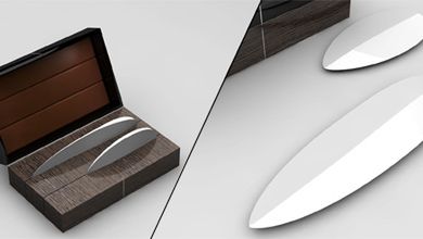 Eleganckie i stylowe białe kamienne kawałki przypomną osobie, która będzie miała okazję je przetestować jak ciężko kroiło się i siekało podstawowe produkty. Z jednej strony kamiennego noża mamy odpowiednio większą powierzchnię do trzymania, a z drugiej znacznie cieńszą do krojenia. Koncept najprawdopodobniej po pierwszym użyciu wyląduje na półce jako ozdoba, ale zawsze mozna nią pochwalić się znajomym.