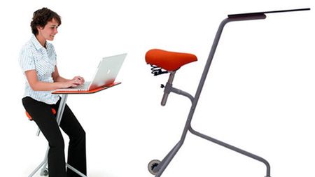 Wszystko po to, aby wycisnąć z nas, szeregowych pracowników jak najwięcej. Jak już zapewne zdążyliście zauważyć, Mobile Desk jest połączeniem siodełka rowerowego, mini stolika pod laptop oraz trójnogu na kółkach. Całość pozwala pracować nam w dość niecodziennej pozycji.