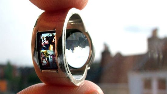 Niejaki Luke Jerram współpracował z firmą jubilerską Tamrakar by stworzyć naprawdę wyjątkową obrączkę dla swojej żony Shelina Nanji. Autor był inspirowany 19 wieczną biżuterią Stanhope pozwalającą na oglądanie miniaturowych obrazków bez konieczności używania mikroskopu. W jego wydaniu jest to świecące cacuszko z kilkoma portretami wbudowanymi w pierścień oraz malutkim szkłem powiększającym po drugiej stronie. W ciemnych pomieszczeniach wystarczy przepuścić przez portrety światło z dowolnego źródła, by po drugiej stronie wyświetlić obrazek.