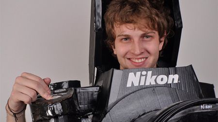 Tyler Card wpadł na niecodzienny pomysł przebrania się za aparat fotograficzny. Lustrzanka Nikona została wyposażona w ekran LCD wykonany z monitora firmy DELL. Ma również działający przycisk zwalniający przesłonę i lampę błyskową.
