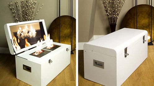 Firma słynie z produkcji właśnie takich gadżetów. Najnowszy model wygląda zupełnie jak zwykła skrzynka i kiedy nie jest używany, może służyć jako mebel. We wnętrzu znajdują się dwa ogniska oraz lustro, które dodatkowo nadaje kominkowi uroku.