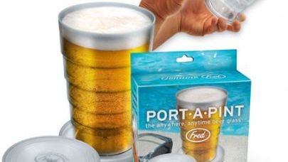 Oto ciekawy gadżet dla imprezowiczów, którzy lubią być przygotowani na każdą okazję - przenośny, rozkładany kufel.