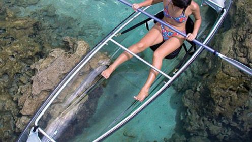 Transparentne kanoe to rozwiązanie dla wszystkich zwolenników oglądania wodnych głębin. Przezroczysty poliwęglan o nazwie Lexan to ten sam materiał z którego buduje się kokpity nowoczesnych odrzutowych myśliwców. Wytrzymałe tworzywo w połączeniu z lekką aluminiową ramą sprawiają, że łódka jest lżejsza od wielu modeli wykonanych w całości z drewna lub aluminium.