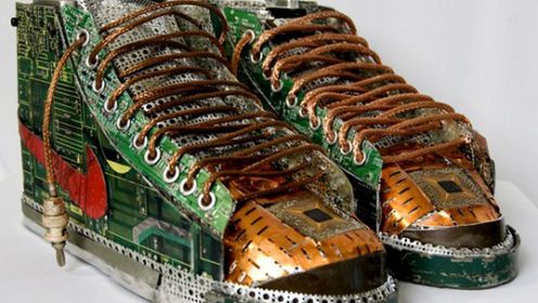 Wiosna wprawdzie na pół roku, ale już teraz możecie przygotować się na innowację w dziedzinie designu obuwia. Co powiecie na trzewiki z elementów, które niegdyś wchodziły w skład zespołów komputerowych? (Inny fason w dalszej części wpisu.)