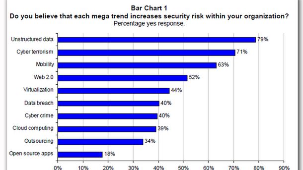 Organizacja Ponemon Institute przepytała 217 menedżerów IT pracujących dla rządu. 79% uznało, że ryzykiem samym w sobie jest zwiększająca się ilość niestrukturyzowanych danych. 63% za zagrożenie uznało rosnącą mobilność. 52% obawiało się Web 2.0: