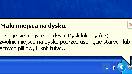 Rejestr: "Mało miejsca na dysku"