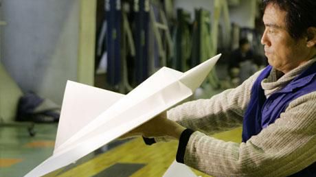 Na zdjęciu powyżej pan Toda z innym papierowym modelem samolotu.
